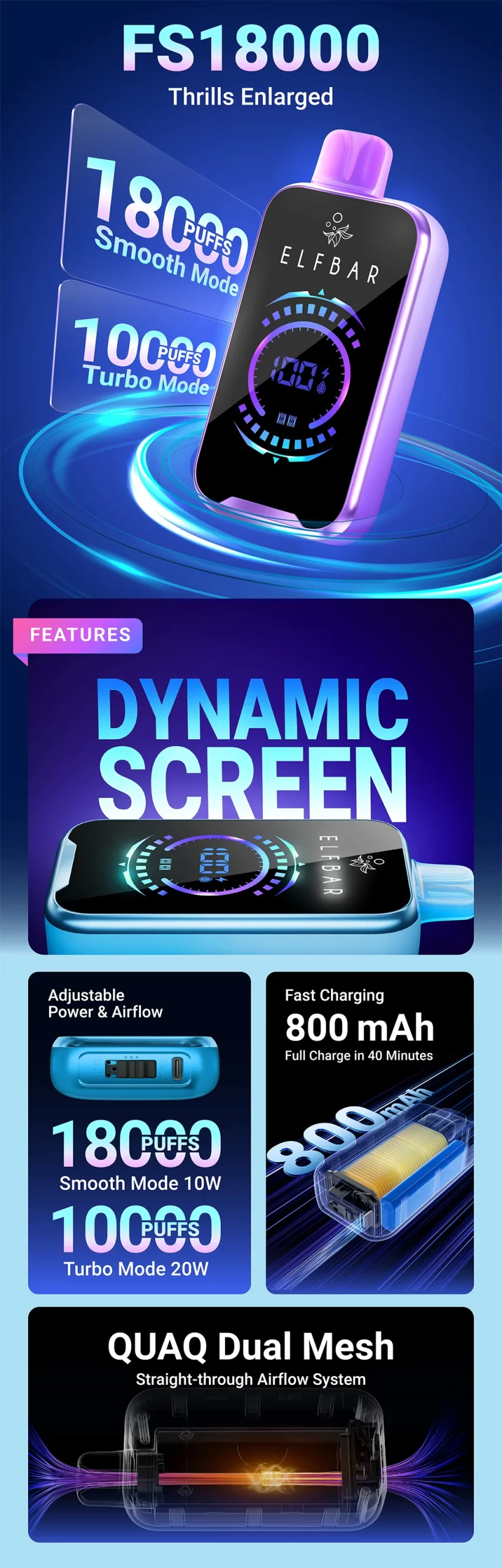 The Elfbar FS18000 stands out as a top-tier disposable vape, combining longevity, powerful nicotine delivery, advanced coil technology, and a diverse flavor lineup. Whether you prioritize flavor intensity, smoothness, or vapor production, this device offers a premium vaping experience that lasts. Perfect for all-day use, travel, or simply enjoying rich, flavorful puffs, the FS18000 is a must-try for any vaping enthusiast.