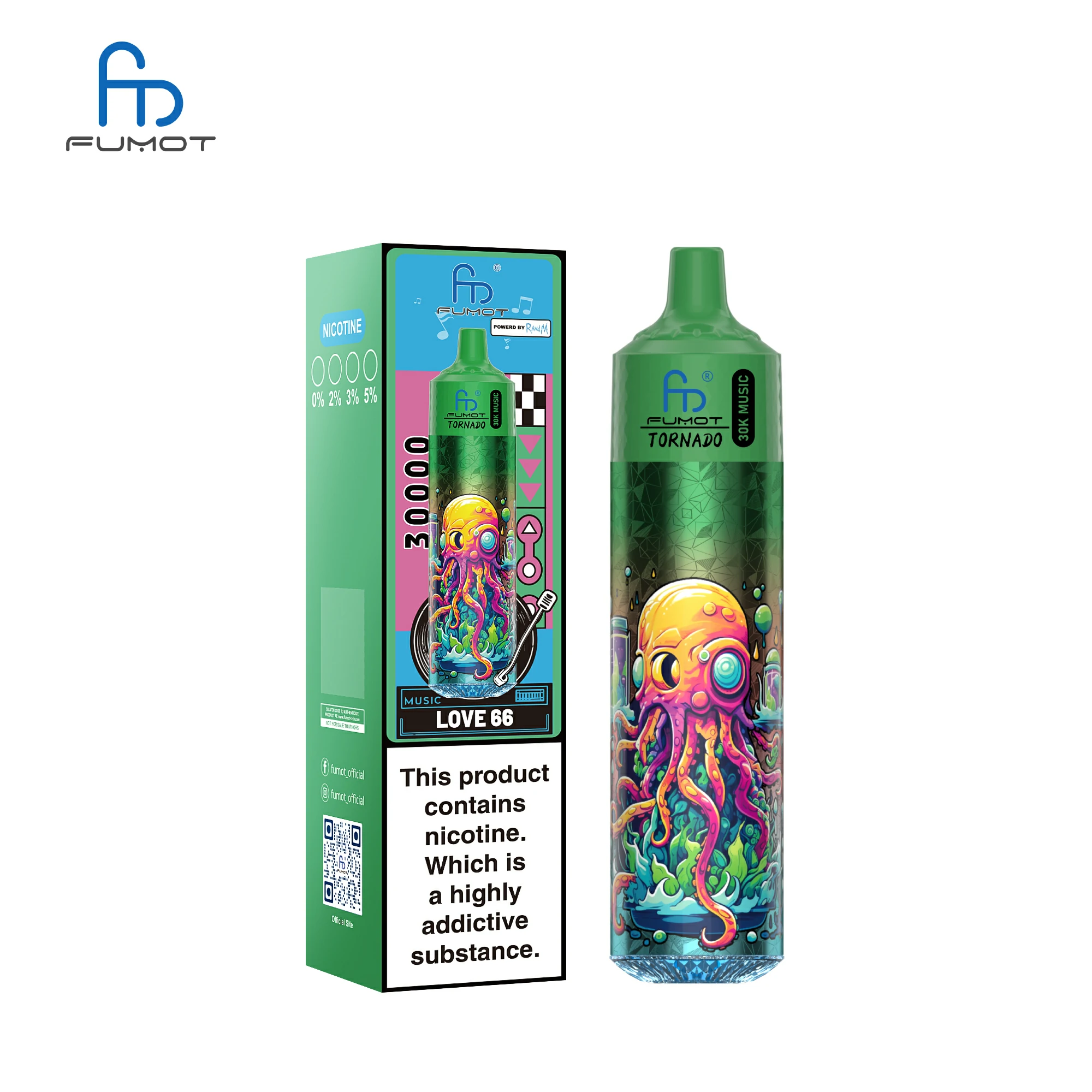 Ignite your senses with the revolutionary Fumot Randm Tornado MUSIC 30K Puffs – the world’s first disposable vape that dances to your rhythm. Featuring music-synced LED lights, this device pulses and glows in real-time to ambient sound, transforming every session into a multisensory experience.